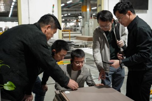 随后,嘉宾一行移步科凡智能化生产基地。从自动化裁切生产线到精密加工设备,再到全流程品控体系,科凡展现了从原料入库到成品交付的标准化能力。北新团队重点关注板材加工精度与数字化流程,对科凡实现“精准裁切、高效交付”的实践给予高度评价。